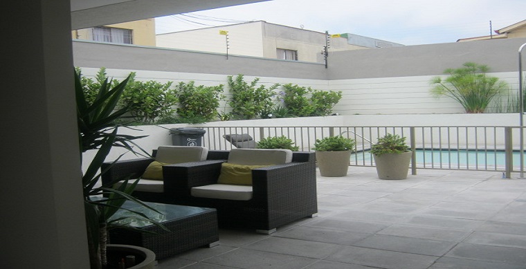 Edificio con piscina, gimansio, sala de cine, quincho, sala de eventos.